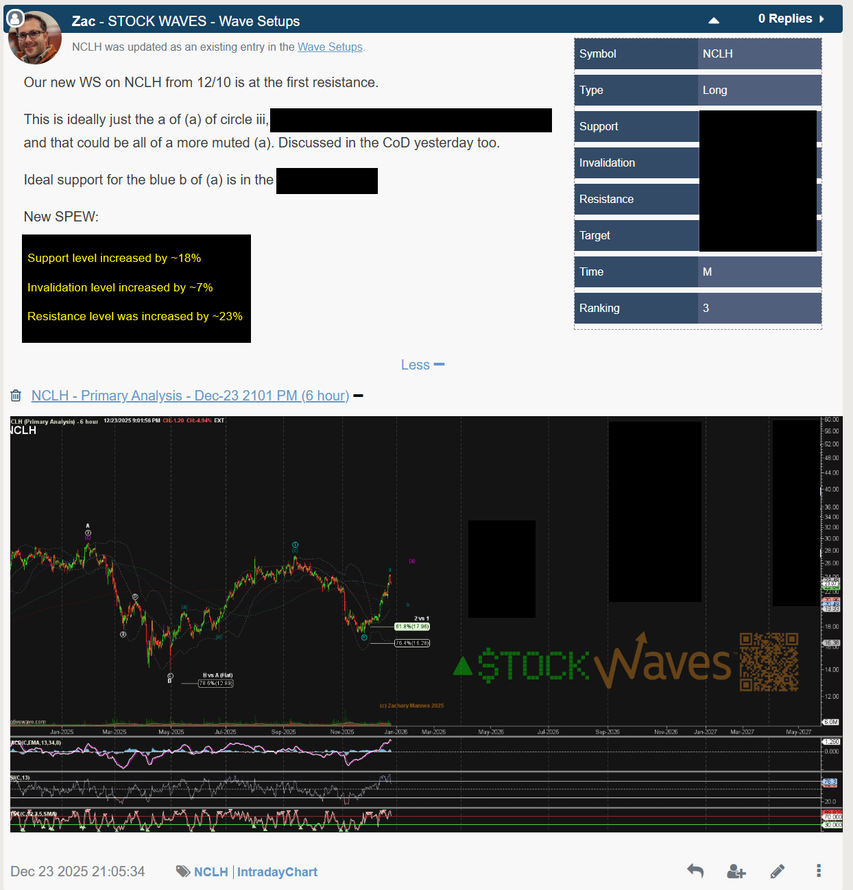 We continue to remain bullish on NCLH off the April 2025 low, and see it potentially doubling into 2027 (providing that support holds). However, given the diagonal structure, it is clear that the road ahead will be filled with more twists and turns.