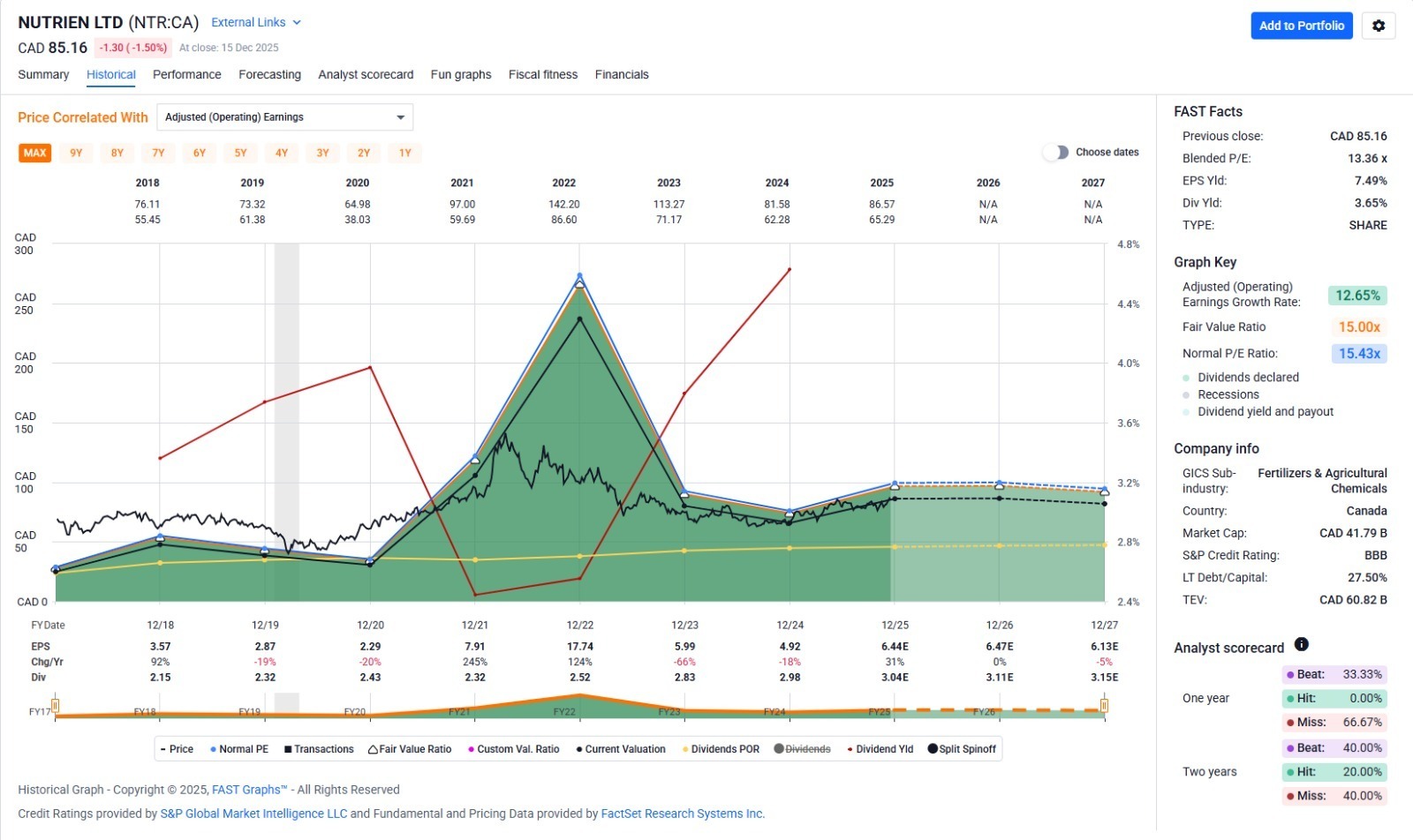 During the last year Nutrien has missed two of the earnings and then exceeded/ met two meet earnings targets, continued to pay their dividend at a sustainable rate and renewed their share repurchase program. They have also followed through on their plan to divest some of their far flung assets, most recently selling their equity stake in Profertil S.A. (Argentina). As a result they have gross proceeds from asset divestiture totalling US$900 million. As a result of these changes, they are focussing their capital on operations that they control in North America, South American and Australia.
